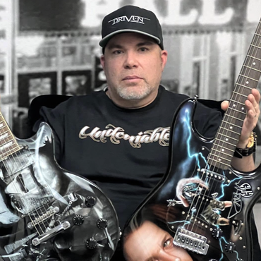 Specializing in ultra-realistic portraits and multi-layered finishes, his work spans guitars, drums, motorcycles, and automotive builds, each piece crafted with precision and emotion.